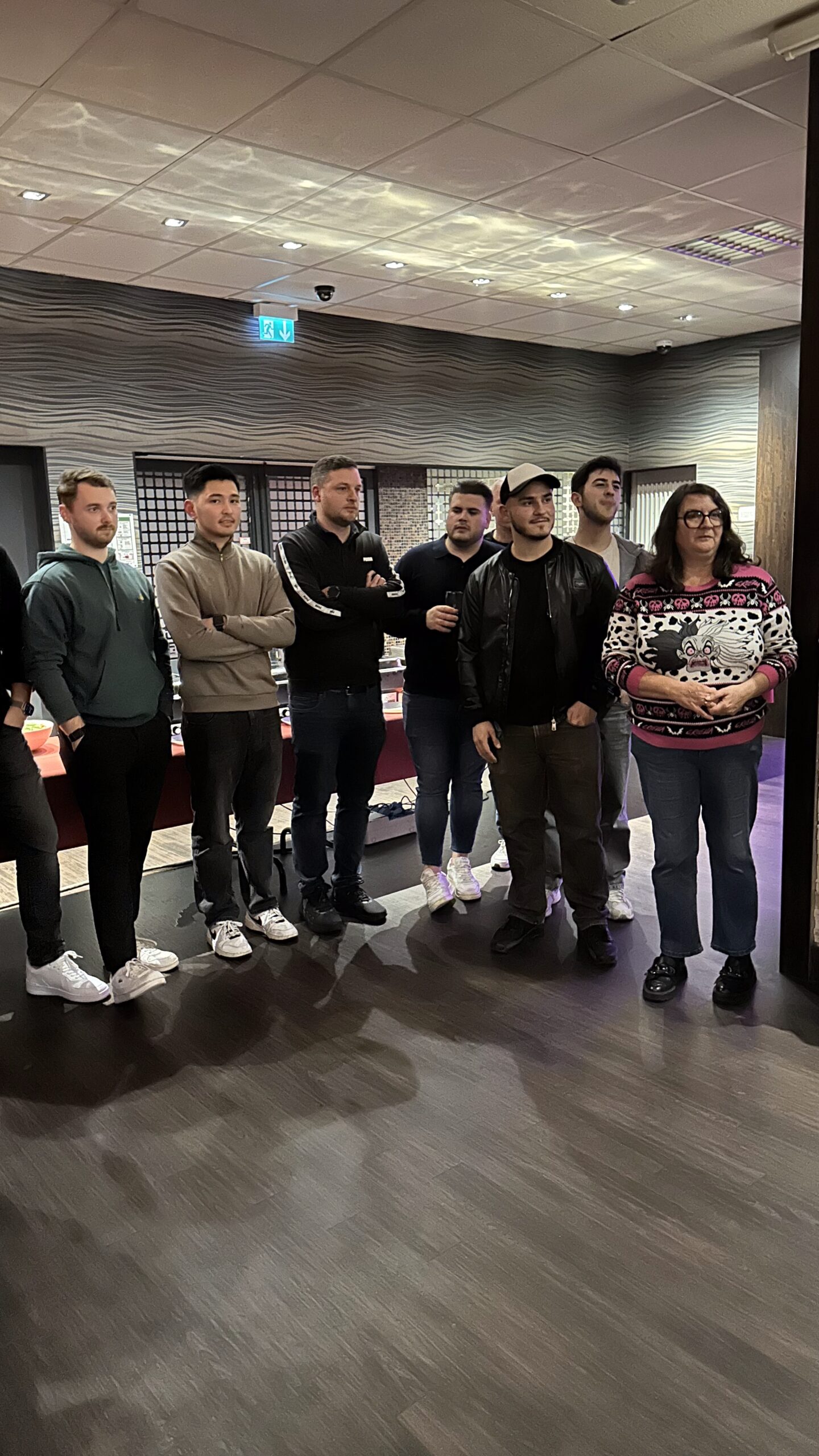 Und weil es in der Logistik manchmal darauf ankommt, kurzfristig neue Entscheidungen zu treffen, um flexibel auf die Situation zu reagieren, war es auch an diesem Abend so: Die Stimmung war einfach zu gut – also haben wir kurzerhand unsere acht Bahnen verlängert und den Abend gemeinsam ausklingen lassen.