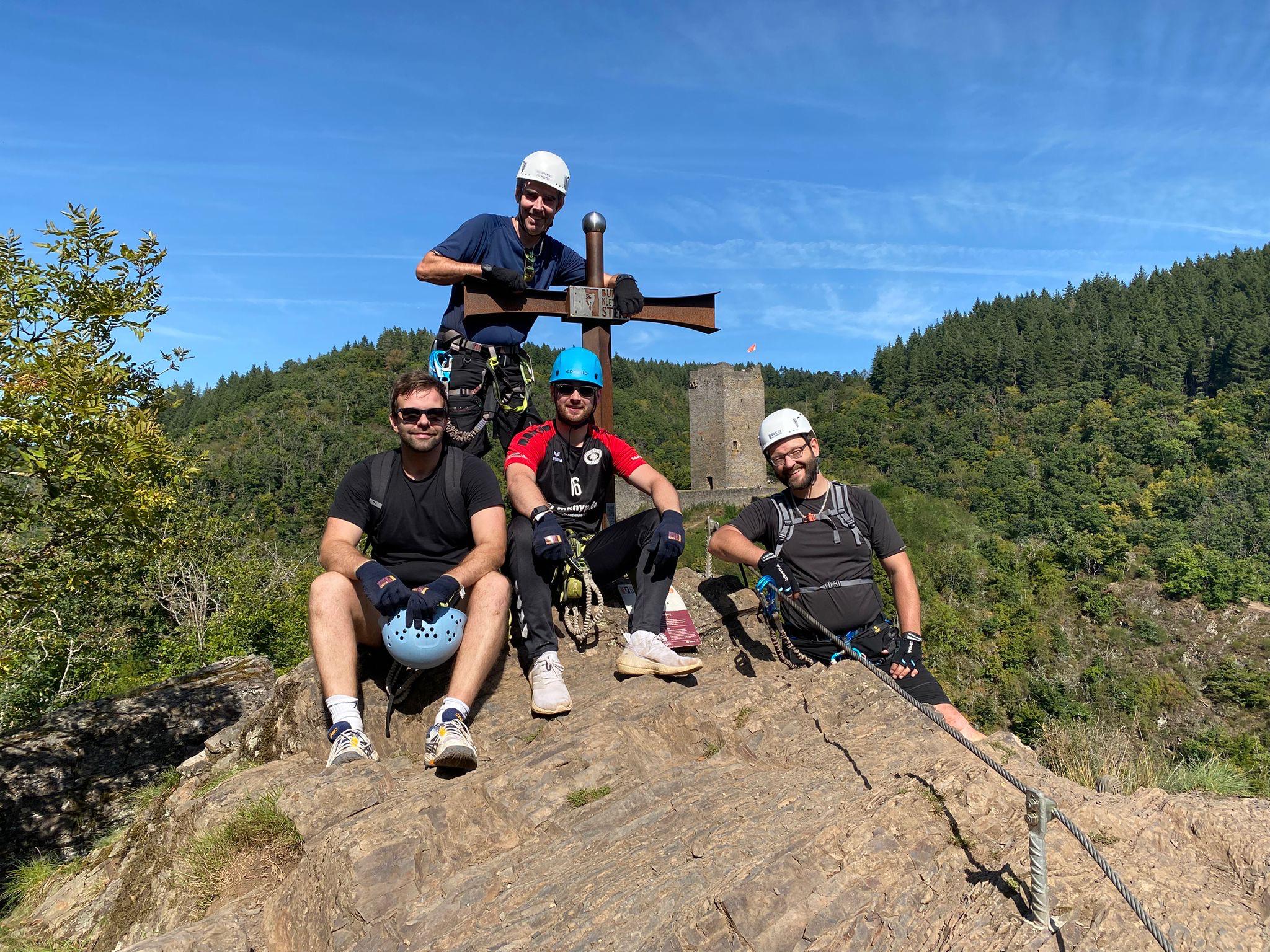 Am vergangenen Wochenende haben einige unserer Kolleginnen und Kollegen von Gate41 Logistics einen besonderen Tag in Manderscheid verbracht. Bei strahlendem Sonnenschein ging es für die Gruppe zum Klettern – hoch hinaus, mit gegenseitiger Unterstützung und jeder Menge Teamspirit.