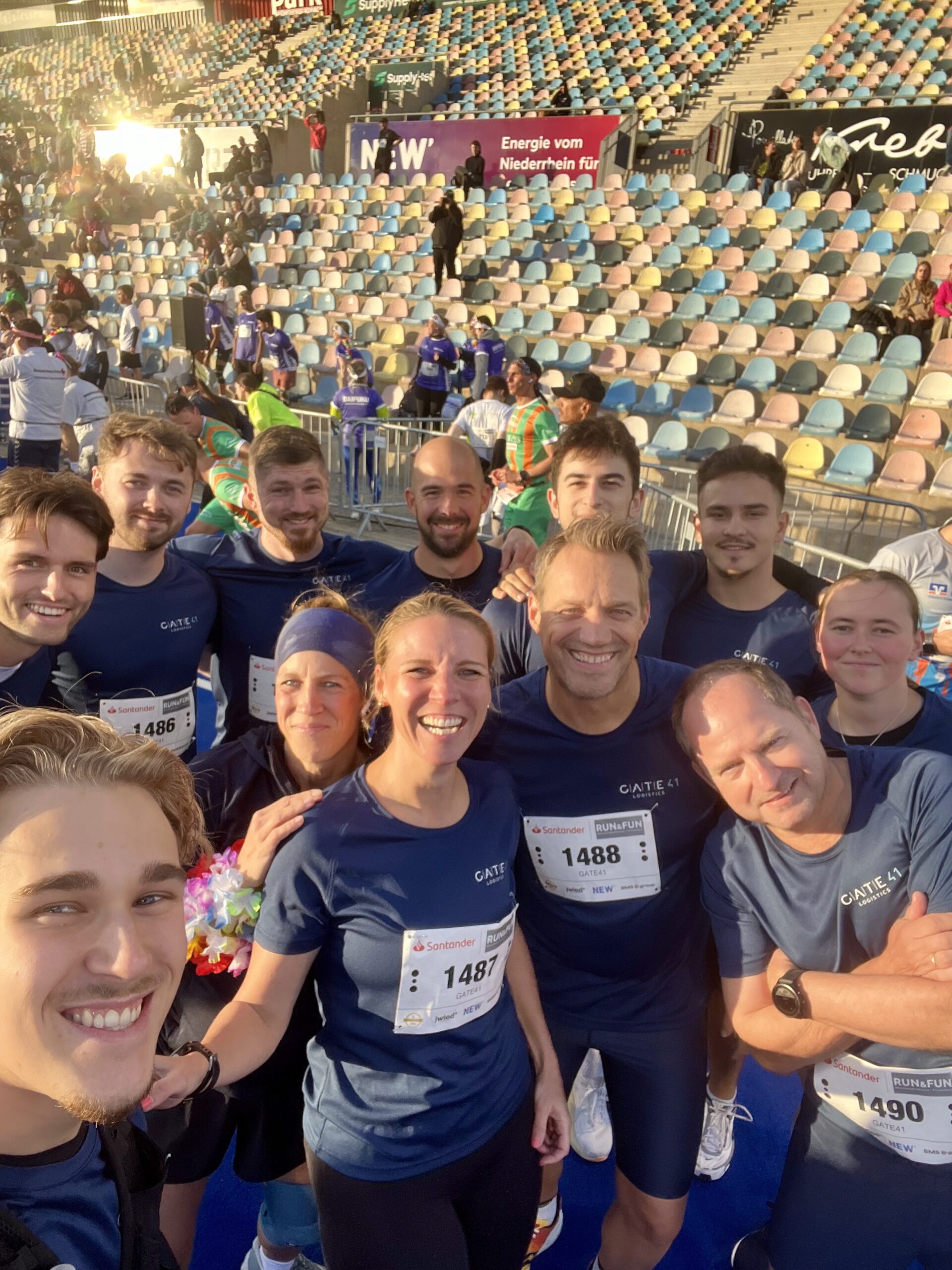 Am Montag, den 15. September, ging unser Gate 41-Team beim Santander Run und Fun am Sparkassenpark in Mönchengladbach an den Start. Mit 13 motivierten Läuferinnen und Läufern – davon 9 Männer und 4