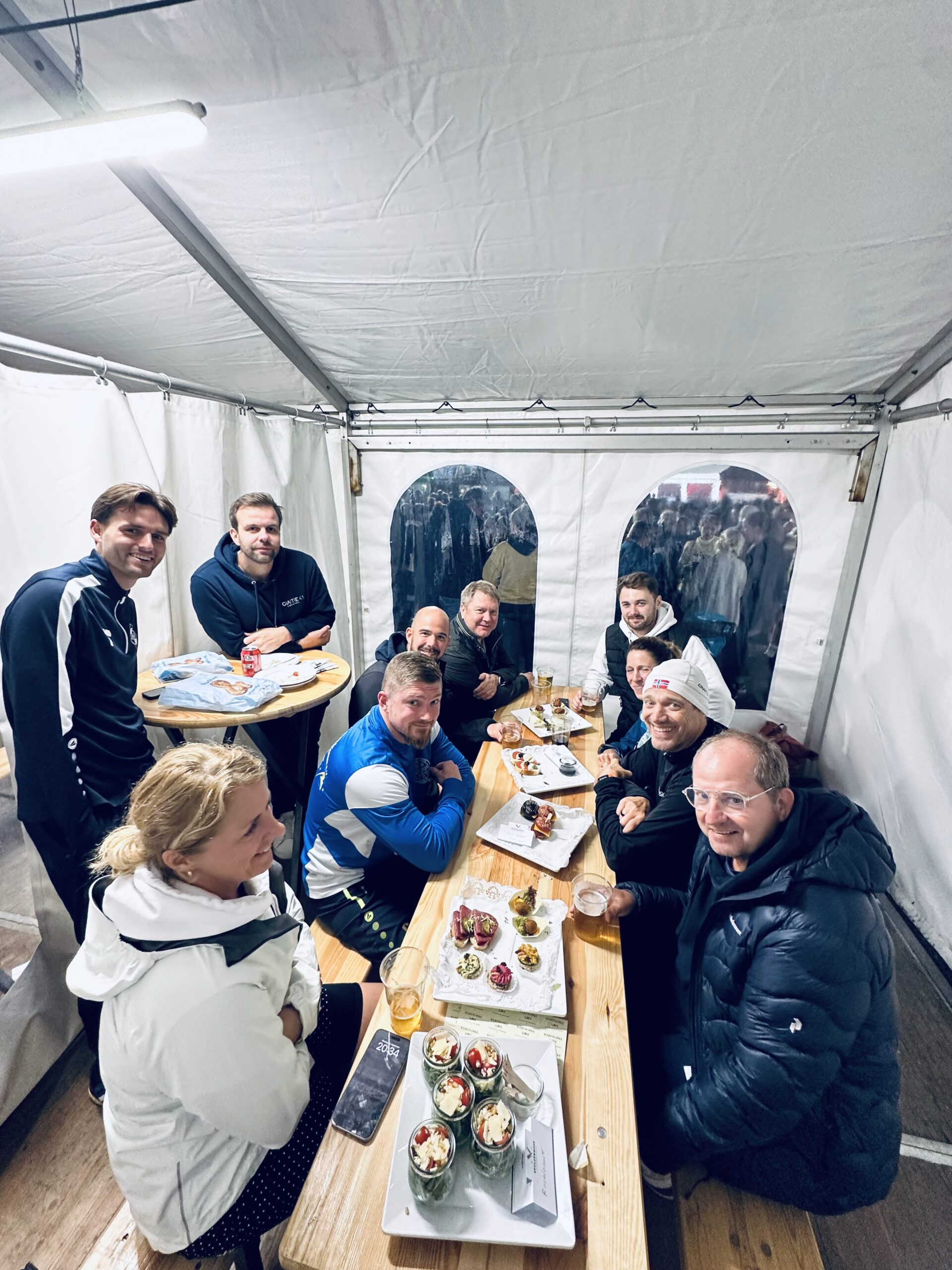 Für uns war 2025 auch organisatorisch ein besonderes Jahr: Wir waren nicht nur Partner der Veranstaltung, sondern hatten auch unser eigenes Gate41-Zelt. So konnten wir uns vor und nach dem Lauf gemütlich zusammensetzen, leckeres Catering genießen und gemeinsam auf unsere Leistung anstoßen. Ein riesiger Fortschritt im Vergleich zum letzten Jahr, als wir noch alle um einen einzigen Stehtisch standen.